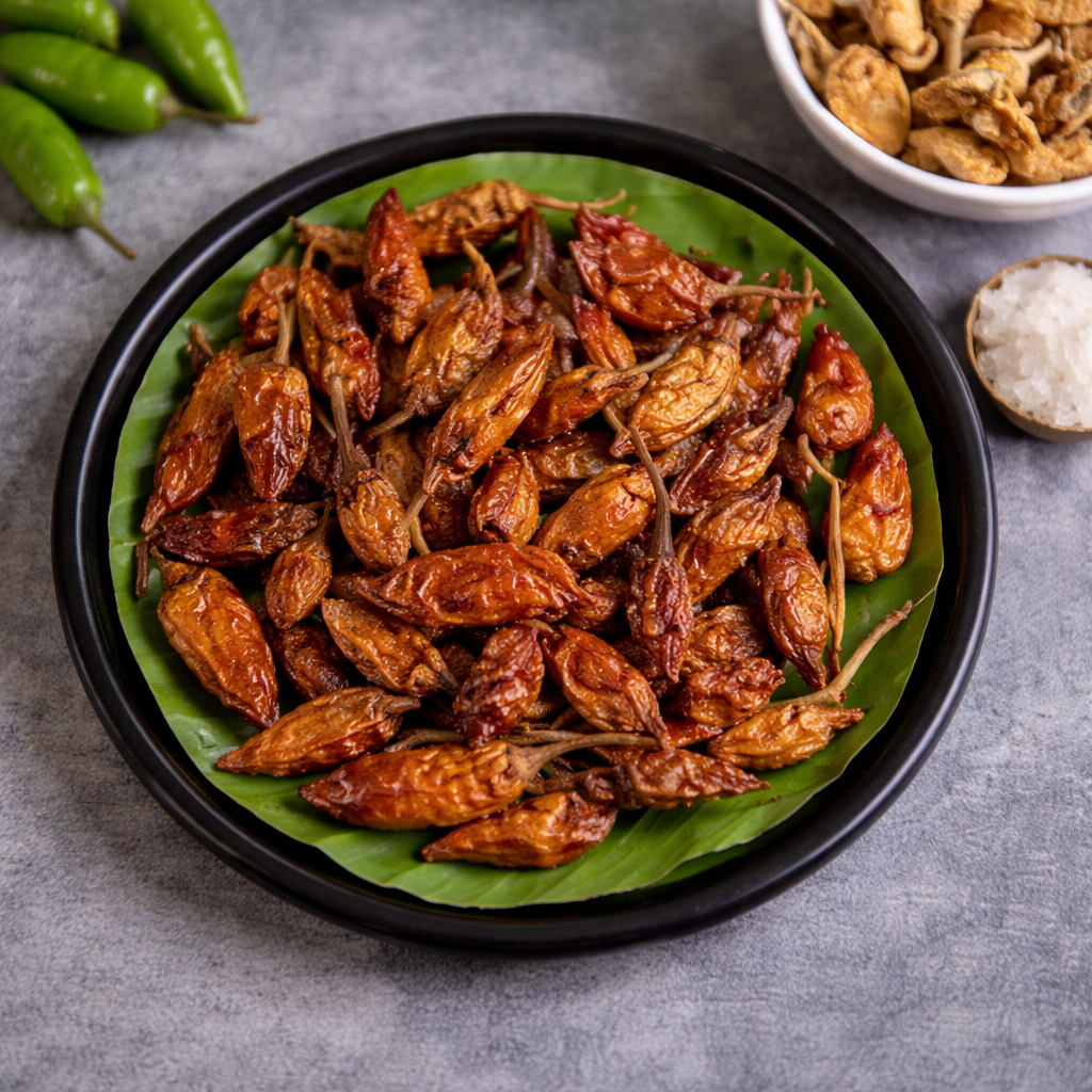 Sun-dried curd-soaked chillies, crisp and tangy with an authentic Tamil Nadu taste.