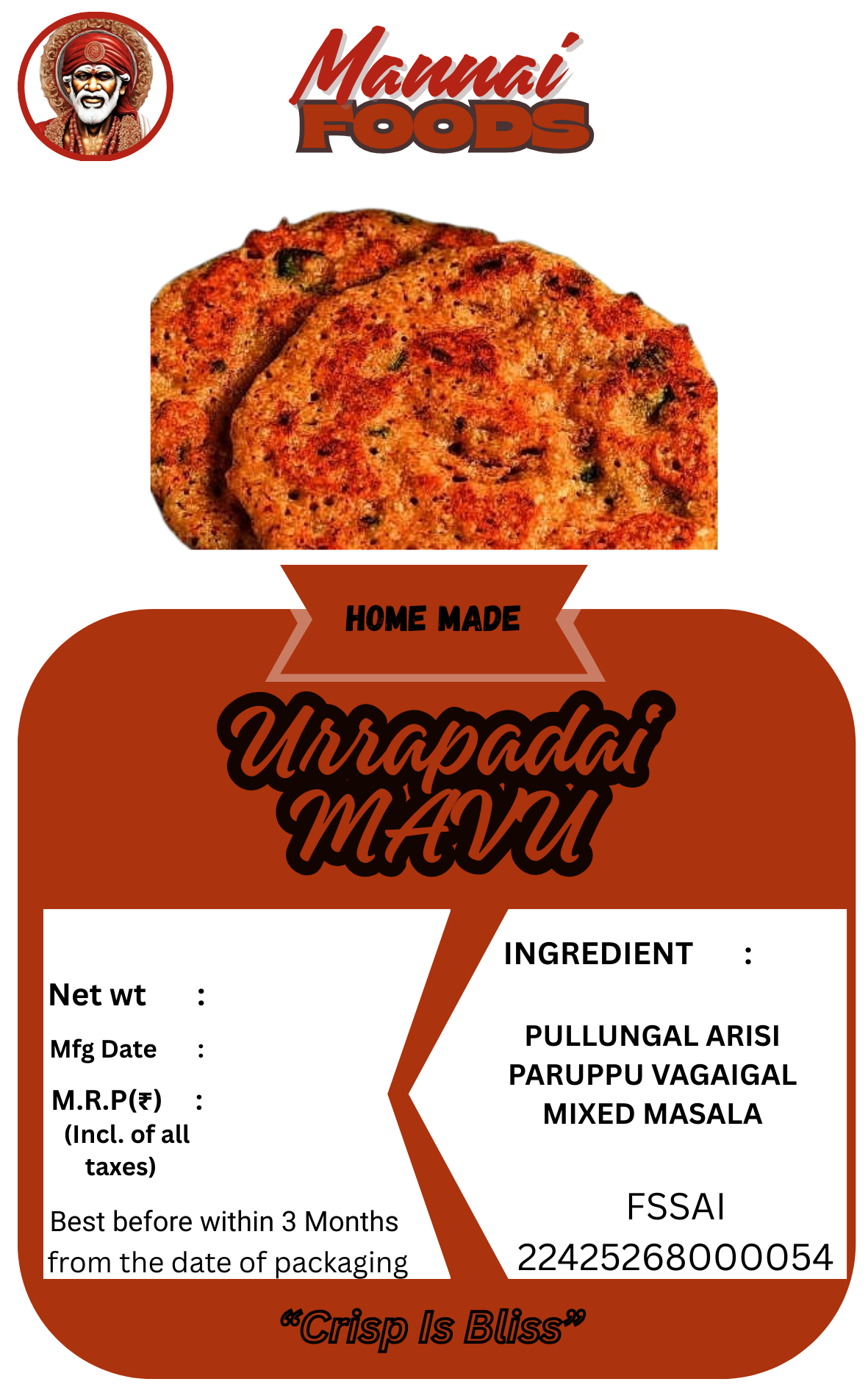 A nutritious mix of lentils and rice, perfect for making traditional Adai or Dosa rich in protein and flavor. Instant food mix. mix with water and chopped onion, tomato (if required) for half an hour, and [it is then] ready to prepare dosa.